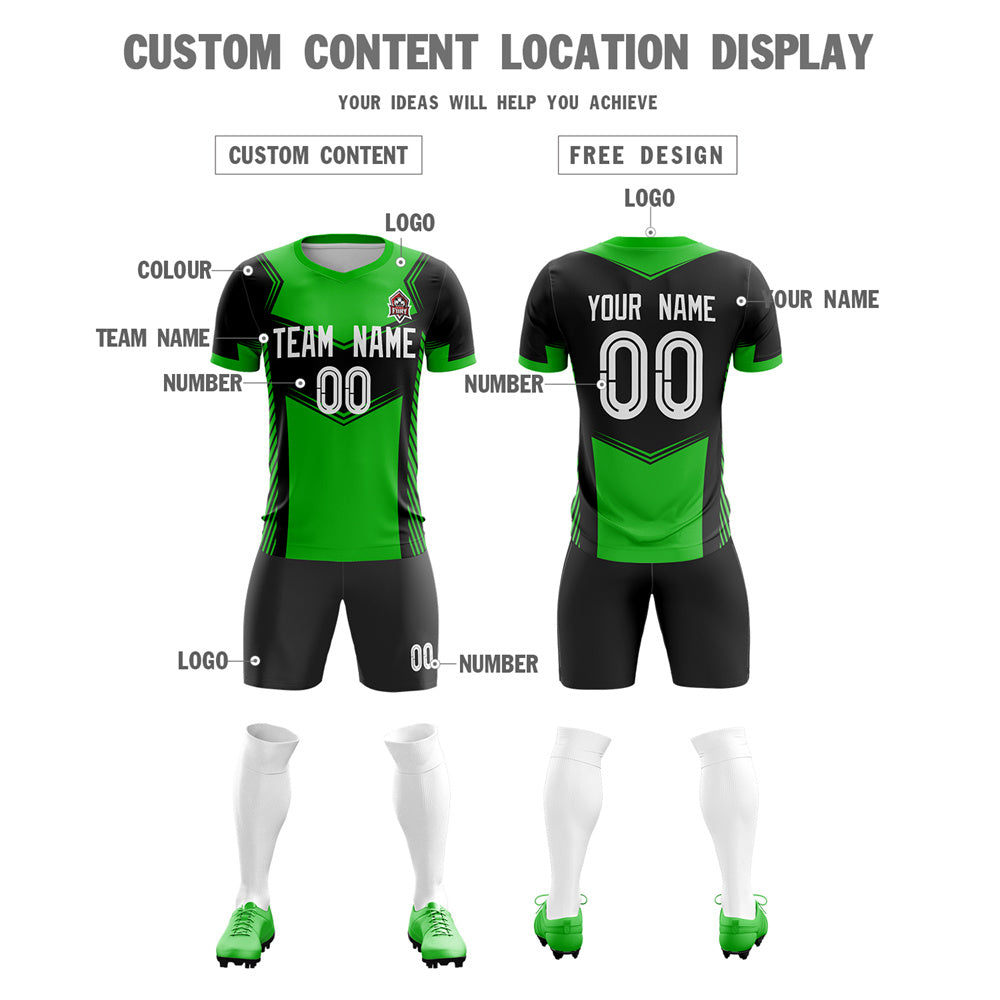 Custom Green Black Soft Training Uniform Soccer Sets Jersey