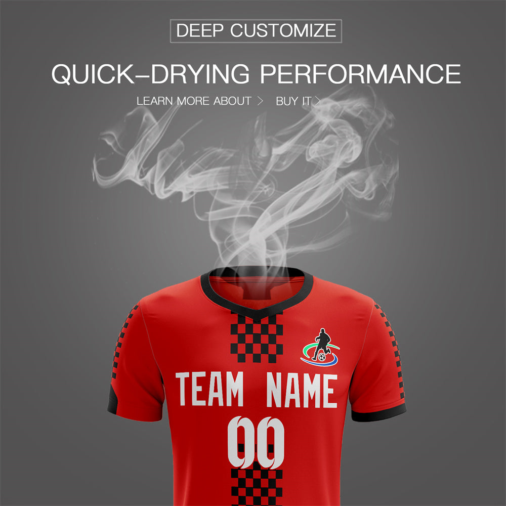• Custom Red Black Soft Training Uniform Soccer Sets Jersey