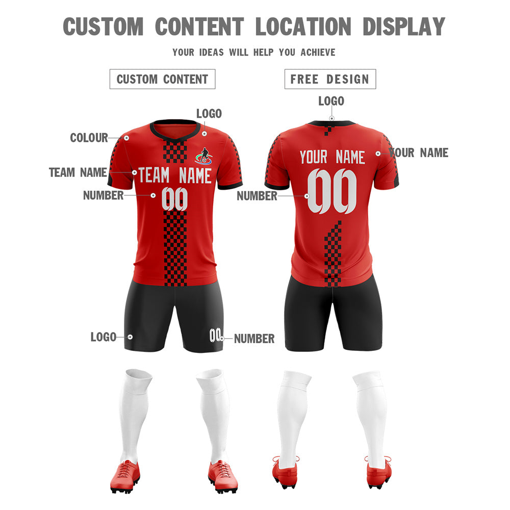 Custom Red Black Soft Training Uniform Soccer Sets Jersey