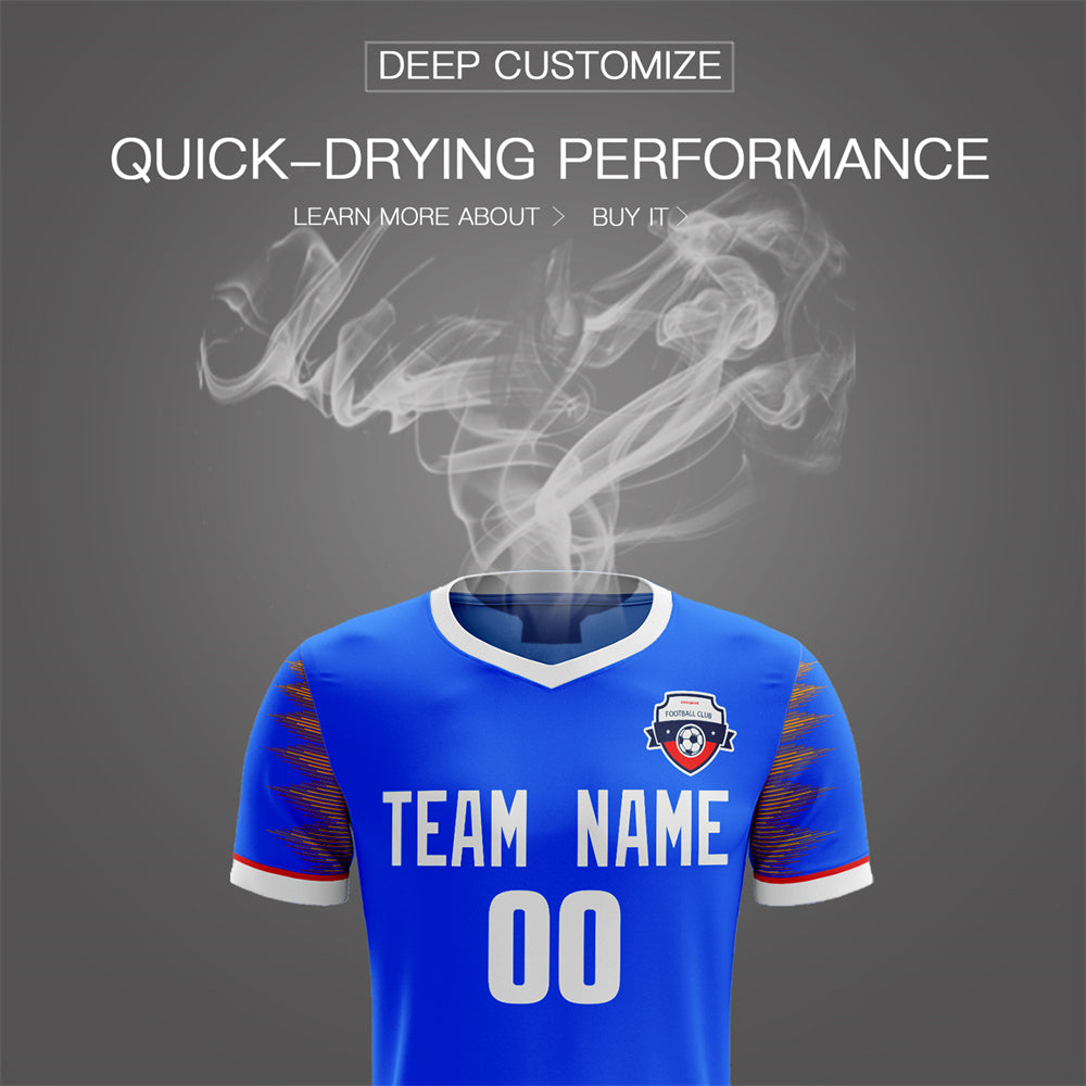 • Custom Blue Black V-Neck Soft Training Uniform Soccer Sets Jersey
