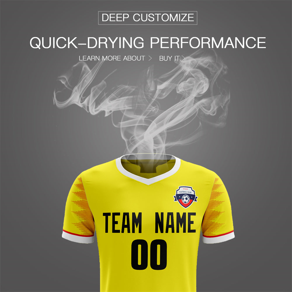 • Custom Yellow Black V-Neck Soft Training Uniform Soccer Sets Jersey