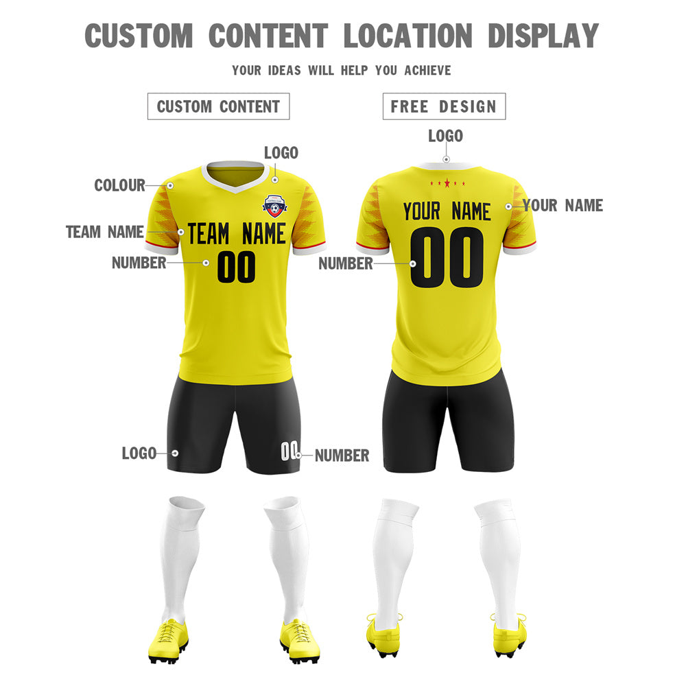 Custom Yellow Black V-Neck Soft Training Uniform Soccer Sets Jersey